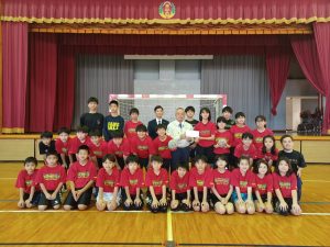 当山小学校ハンドボールクラブに贈呈させていただきました。